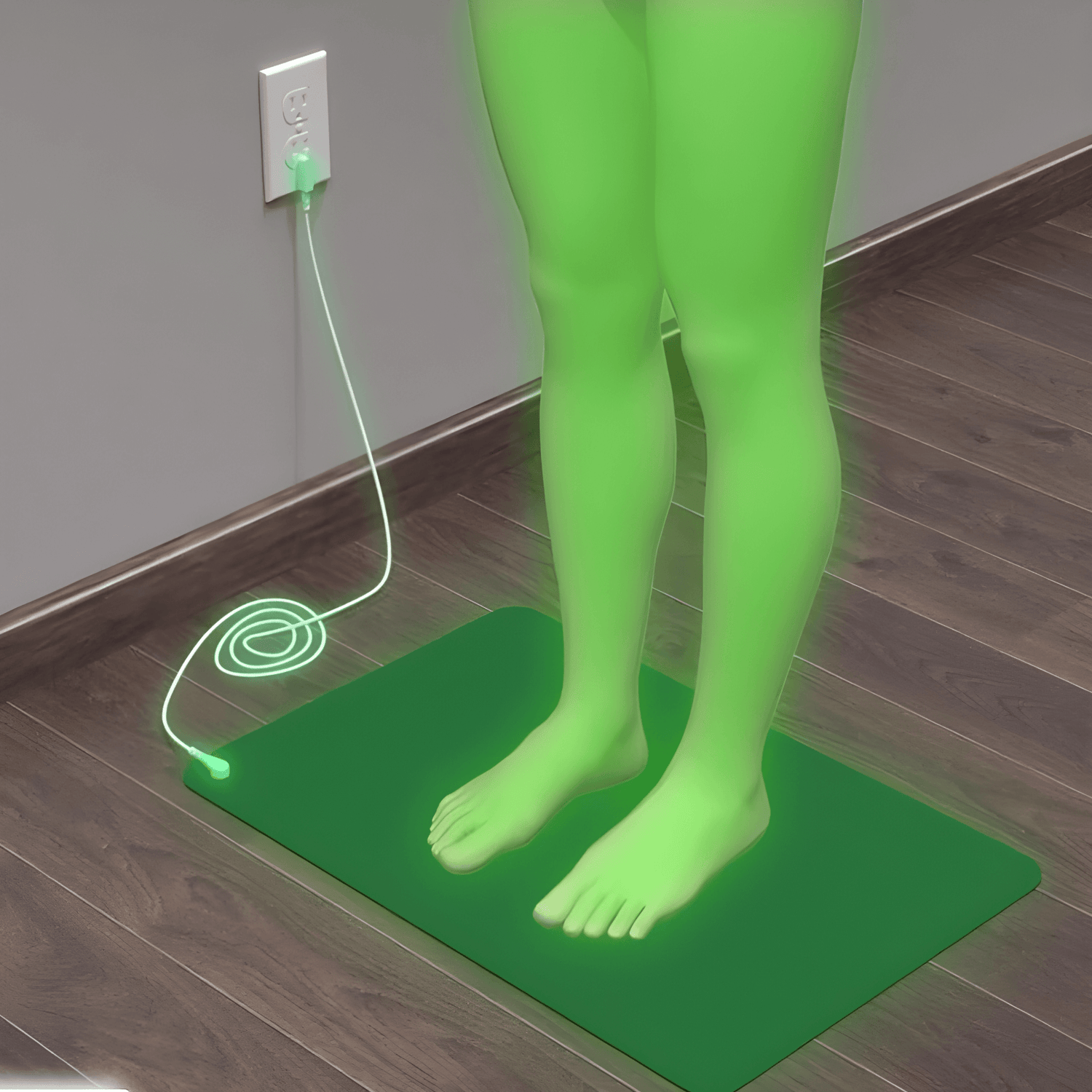 Anslut den medföljande kabeln till vägguttagets jordningskontakt och placera händer eller fötter på mattan. På bara några ögonblick kan du börja dra nytta av de möjligheter som jordning kan erbjuda.